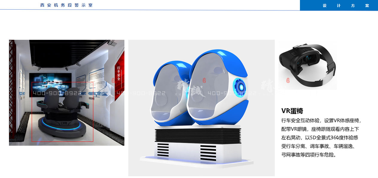 4.VR蛋椅:行車安全互動體驗,設置VR體感座椅,配帶VR眼鏡,座椅跟隨觀看內(nèi)容上下左右晃動,以5D全景式360度體驗感受行車分離、調車事故、車輛溜逸、弓網(wǎng)事故等四項行車危險。