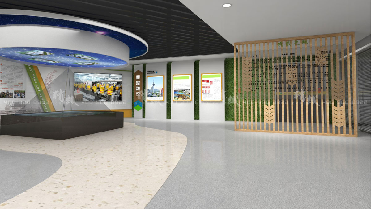 以上是我們公司(陜西精誠展覽裝飾有限公司)為陜西糧農(nóng)集團打造的中國好糧油示范展廳,可供參考。