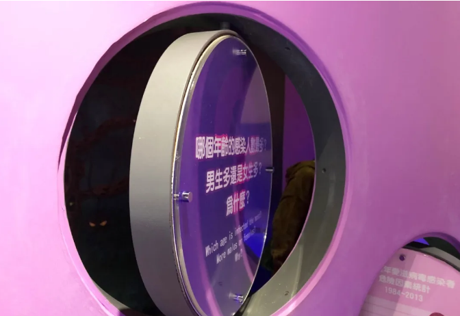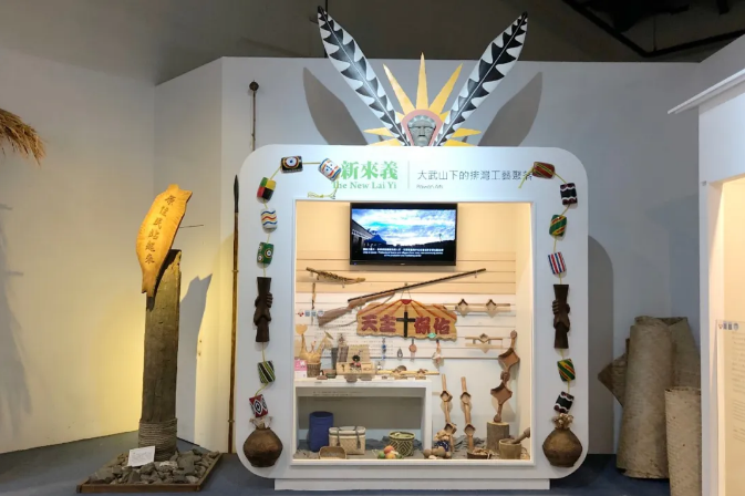 原住民展示區(qū):原部落的造型圖案與現(xiàn)代櫥窗相結合,原始風味用了現(xiàn)代的手法進行表現(xiàn),櫥窗使用半高的透明玻璃進行隔斷,防止游客觸碰,并附有即時貼文字,進行介紹,二維碼方便游客掃一掃更進一步的詳細認知了解,櫥窗內(nèi)側(cè)放置了一臺顯示器,滾動播放原始部落的視頻內(nèi)容
