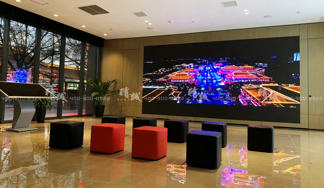 游客休息區(qū)的拼接大屏播放著曲江新區(qū)精彩紛呈的文旅項目影片,一遍遍地釋放著這座城市無與倫比的文化魅力。